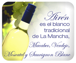 • BLANCOS Airén que es el blanco tradicional de La Mancha, Macabeo, Verdejo, Moscatel y Sauvignon Blanc.
